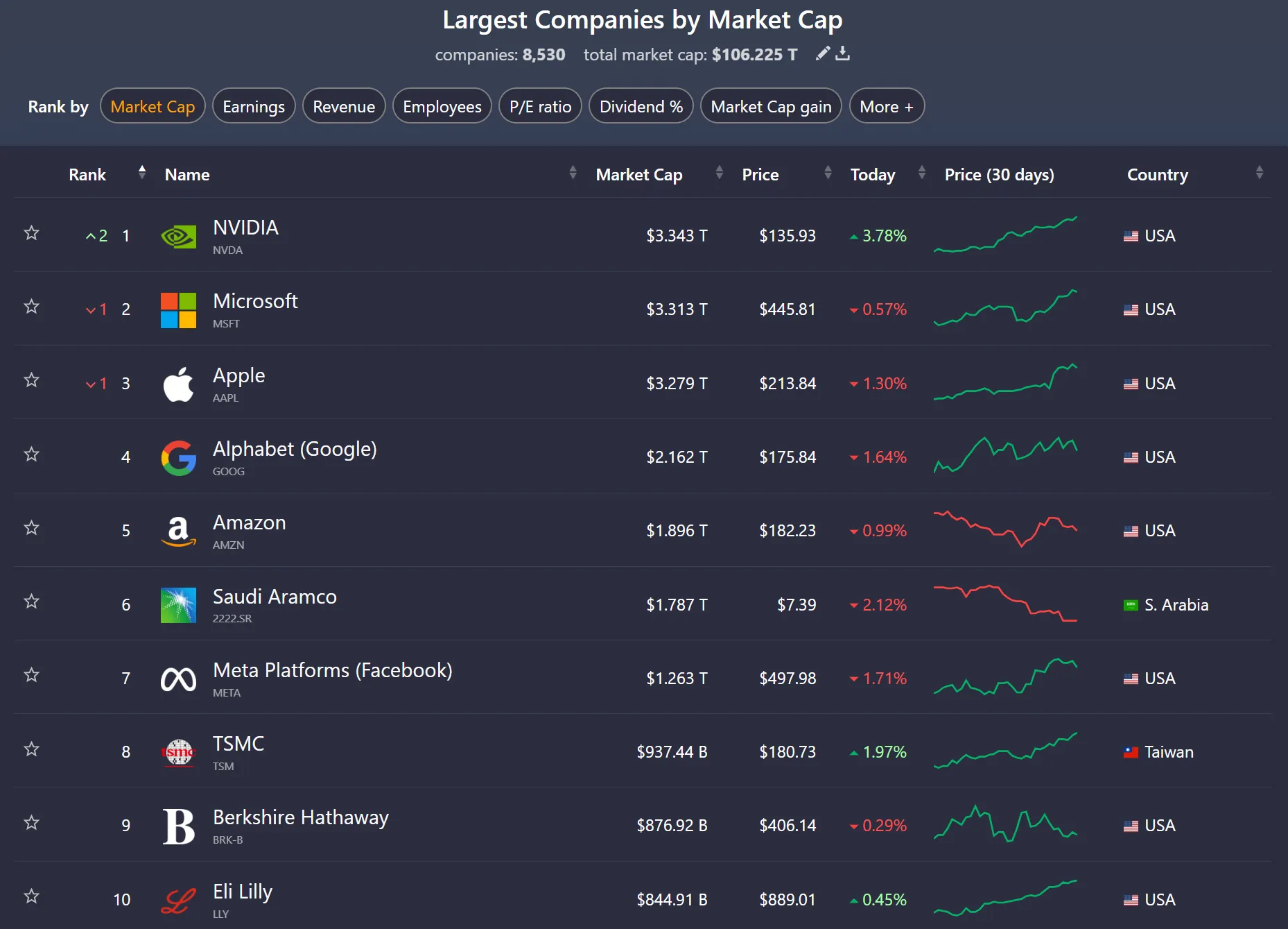 Bahkan, posisi pertama ini dicapai hanya berselang dua minggu setelah NVIDIA menggeser posisi kedua dari Apple. Nilai pasar perusahaan tersebut tumbuh secara eksplosif terutama dalam setahun terakhir, melar dari $1 triliun ke $2 hanya dalam waktu sembilan bulan dan mencapai $3 hanya dalam tiga bulan saja.