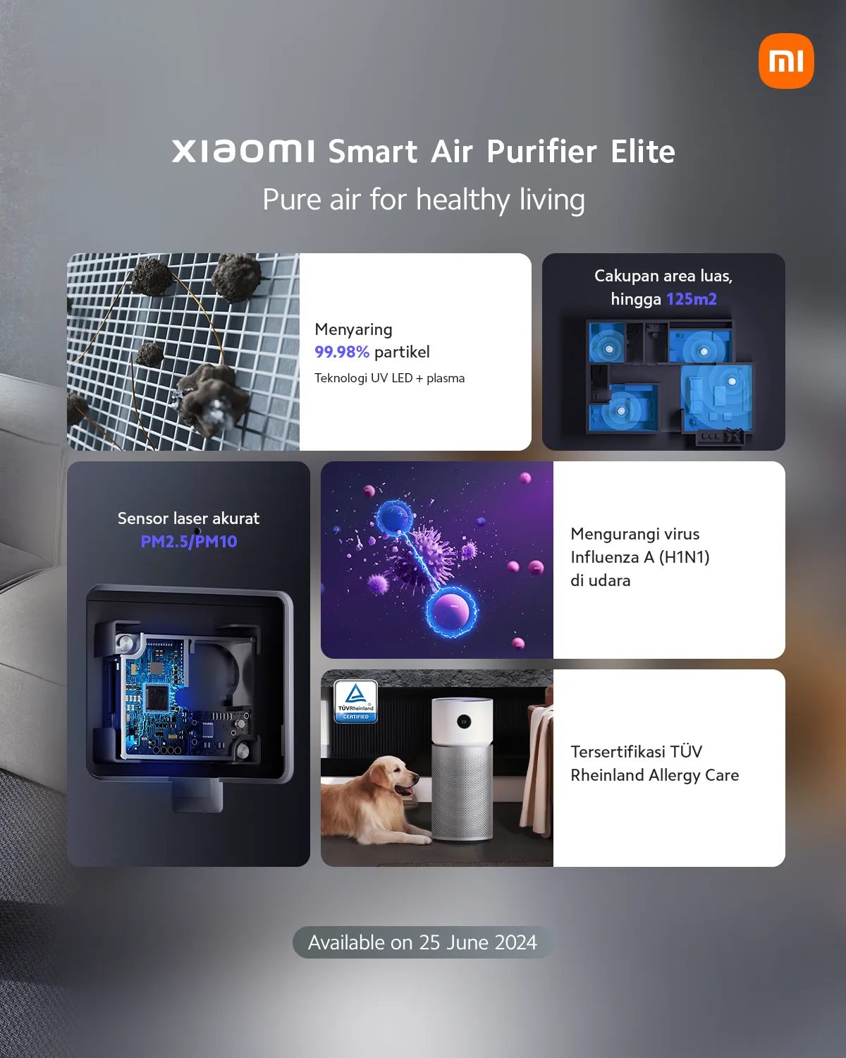 Xiaomi Smart Air Purifier Elite dibanderol dengan harga resmi Rp4.4999.000. Namun, bagi kalian yang ingin membelinya harap bersabar karena produk satu ini baru akan tersedia mulai tanggal 25 Juni 2024.