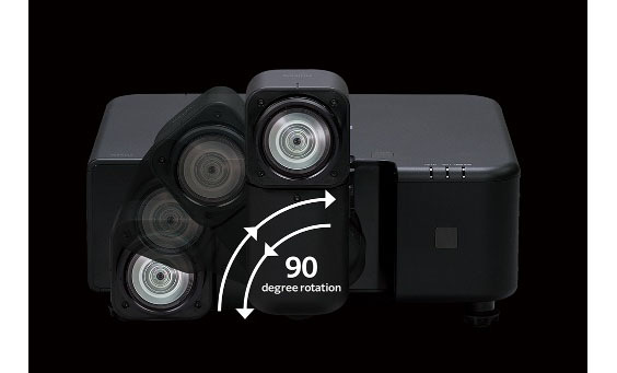 Proyektor Fujifilm FP-ZUH6000 dilengkapi dengan lensa lipat dua-axial yang bisa diputar. Teknologi unik ini memungkinkan lensa untuk dimiringkan hingga 90 derajat dan diputar 360 derajat secara mulus, menawarkan fleksibilitas arah sorot.