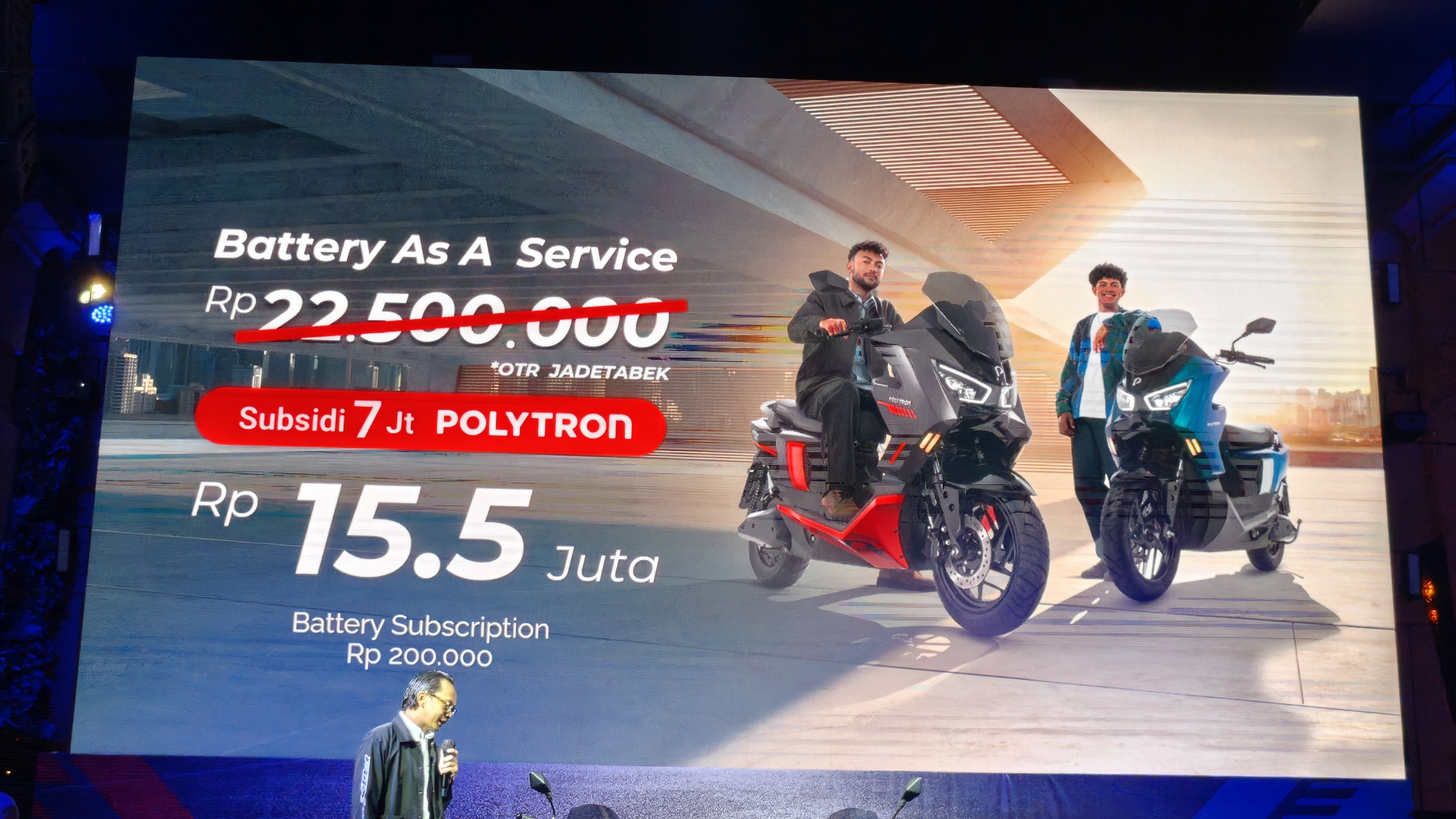 Polytron juga menawarkan dua opsi kepemilikan. Pada skema Battery Subscription, harga motor adalah Rp 22,5 juta dan turun menjadi Rp 15,5 juta setelah subsidi. Biaya langganan baterai Rp 200 ribu per bulan sudah termasuk garansi baterai seumur hidup. Bagi yang ingin memiliki baterai secara penuh, tersedia opsi buy-to-own yang awalnya seharga Rp 40 juta, namun melalui harga bundling Rp 34,5 juta dan subsidi Rp 7 juta, pengguna bisa mendapatkannya dengan harga Rp 27,5 juta.